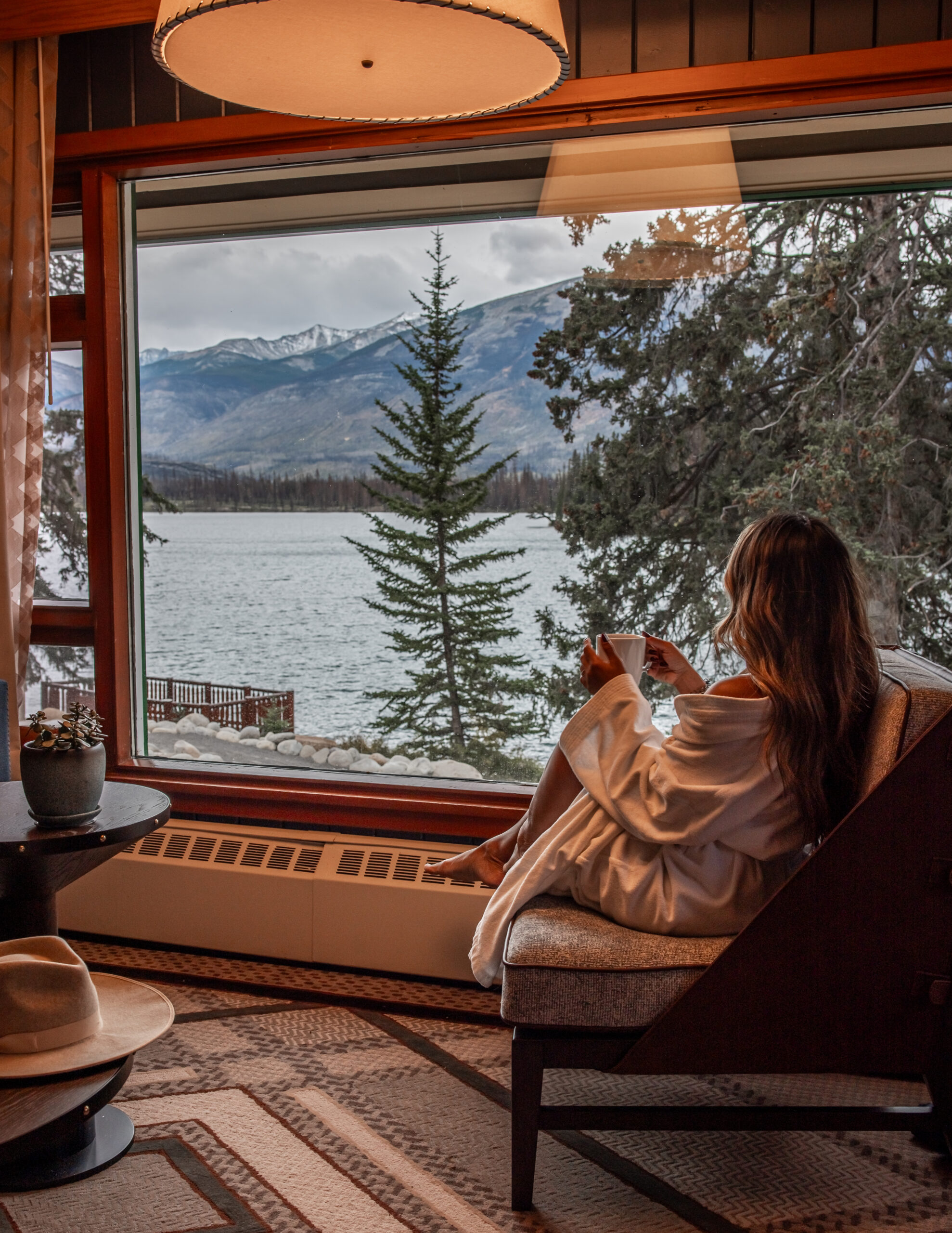Staying here gives you unlimited access to the frozen lake & you can rent skates, snowshoes & cross-country skis from the Lodge. It’s such a lovely, quiet & scenic base for exploring Jasper, and a great spot if you like stargazing too since Pyramid Lake Island & Bridge is a great spot for aurora watching! If you stay here, make sure to check out the Aalto restaurant for breakfast or dinner.