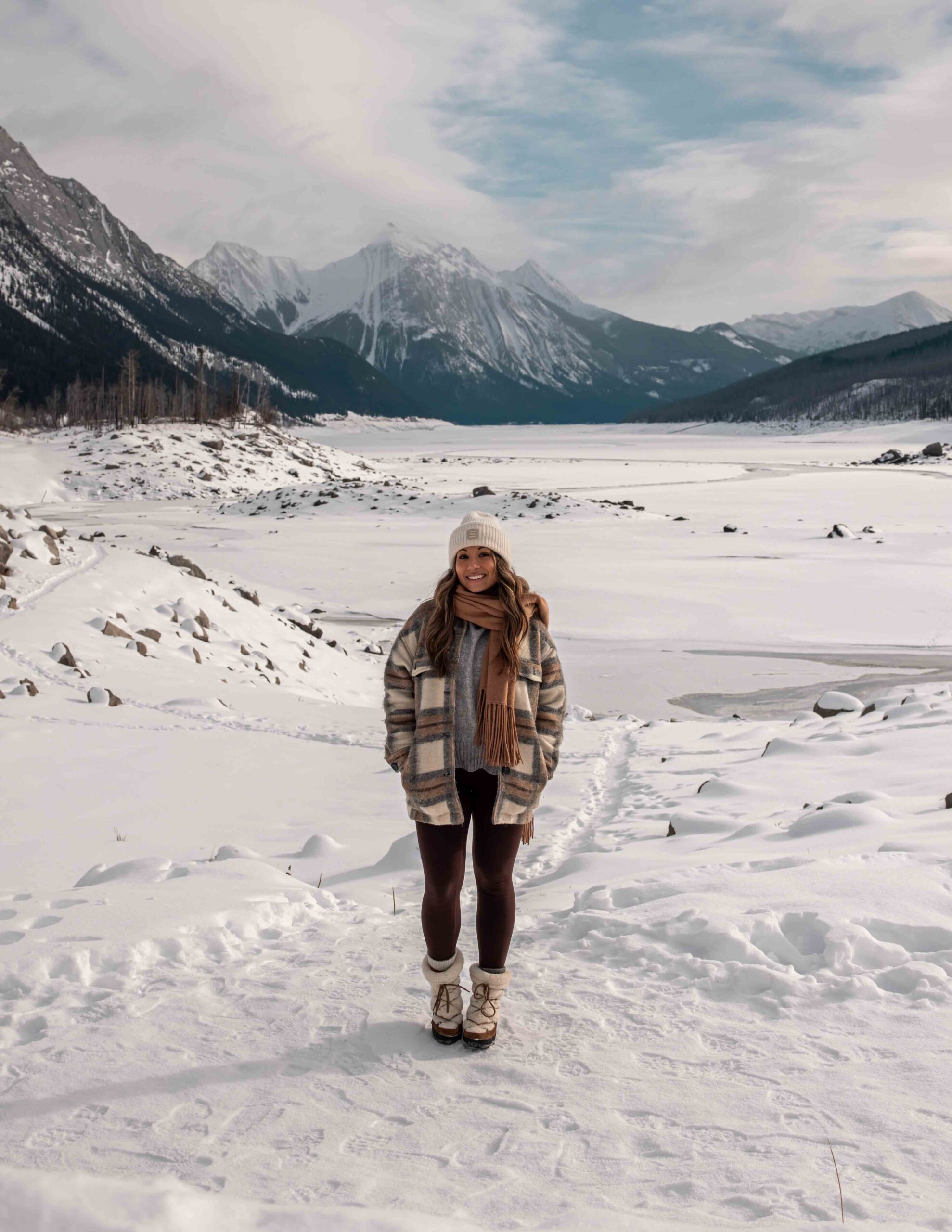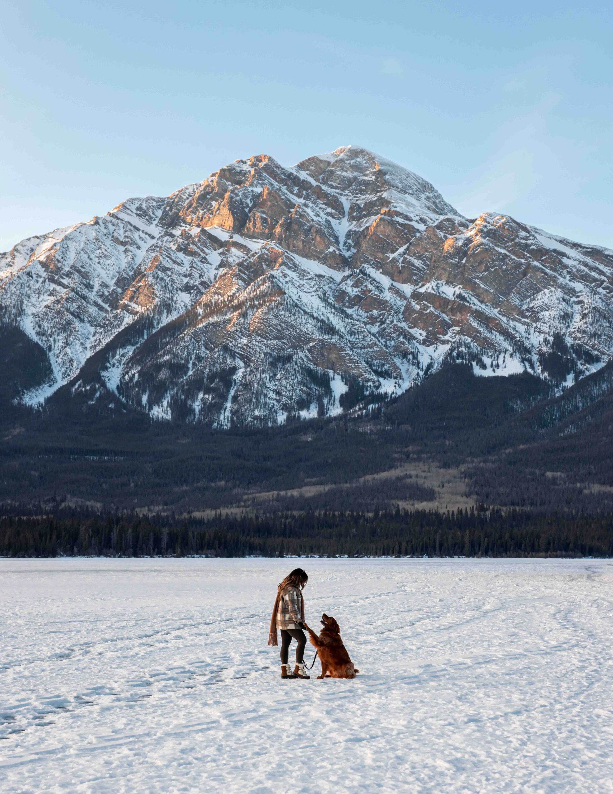 While a lot of Jasper National Park is blanketed in snow during the colder months, Jasper’s most iconic spots are still accessible & arguably more beautiful when covered in snow! If you have access to a car, all of these places are accessible self-guided (winter tires are mandatory). If you’re visiting without vehicle access, you can hop on a tour with companies like Sun Dog to visit these spots. Check out my guide to dog-friendly winter Jasper activities if you're travelling with your pup. Our favourite places to visit in winter are: