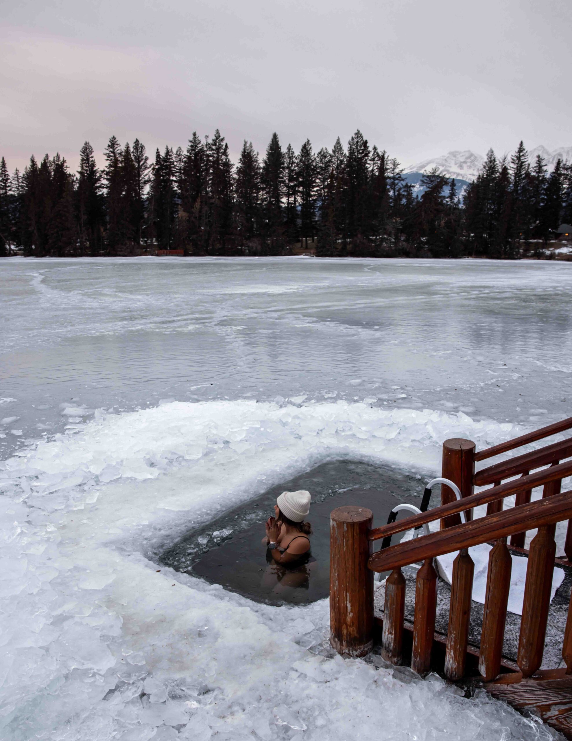 Beauvert Lake - We love Fairmont Jasper Park Lodge’s Glacial Plunge & Sauna Experience by Beauvert Lake! Take a dip in the icy lake, warm up in their cedar sauna & take part in a guided meditation & breathwork session to get your day off to the best start. This is available to guests & non-guests, you can book here.